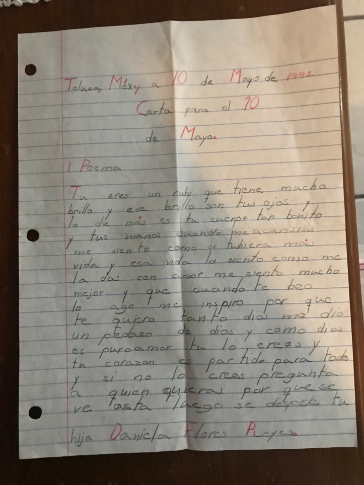 Me encontré esta joya, la escribí cuando tenía 8 años para el día de la madre. Si bien nunca he sido muy fan de memorizar ni reglas, ni tablas de multiplicar, nombres y demás; me gusta expresarme. La clase de reglas gramaticales no era mi favorita, prefería artísticas o matemáticas.